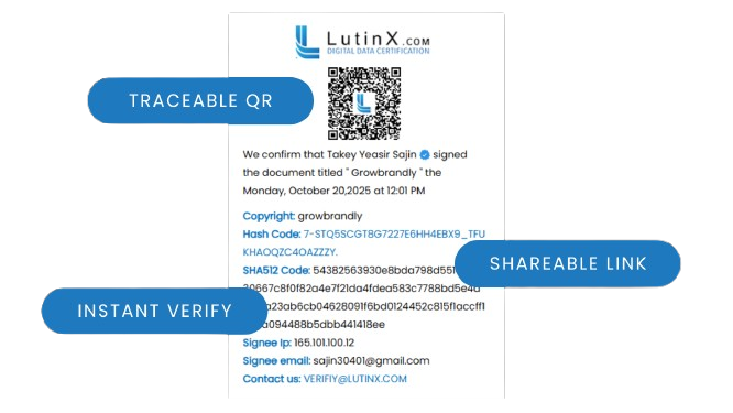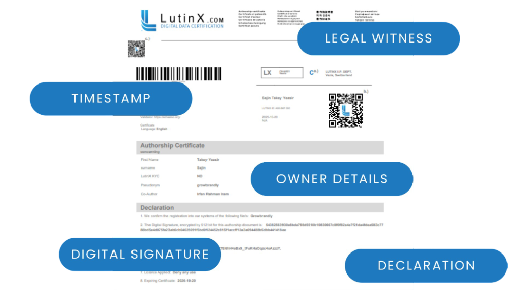 With this certificate, you can defend your rights easily if anyone copies your work. It’s fast, affordable, and valid in 175+ countries, making it simple for creators, artists, and businesses to protect their ideas worldwide.